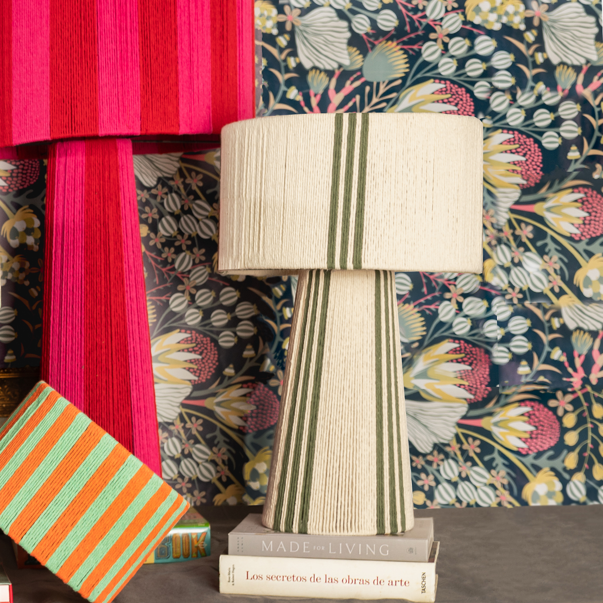 La pantalla puede limpiarse con un quitapelusas siguiendo el sentido de la fibra. También puedes sacudirla suavemente o usar aire frío de un secador de pelo. Incluye un protector textil que cuida el color y mantiene el algodón en óptimas condiciones. Al estar hecha a mano con materiales textiles, pueden existir pequeñas variaciones en la tensión del hilo, lo cual es parte de su identidad y encanto.