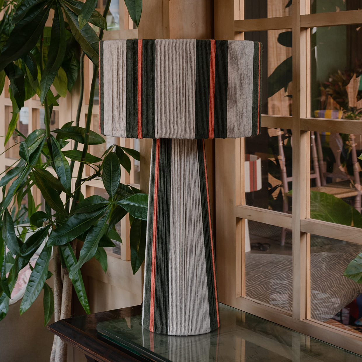Cada lámpara presenta sutiles variaciones propias del tejido y del proceso manual de entrelazado, lo que le otorga profundidad, textura y un sello único. Es ideal para quienes valoran objetos hechos con intención, dedicación y una identidad visual auténtica.